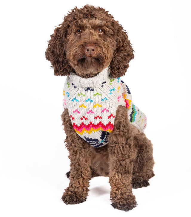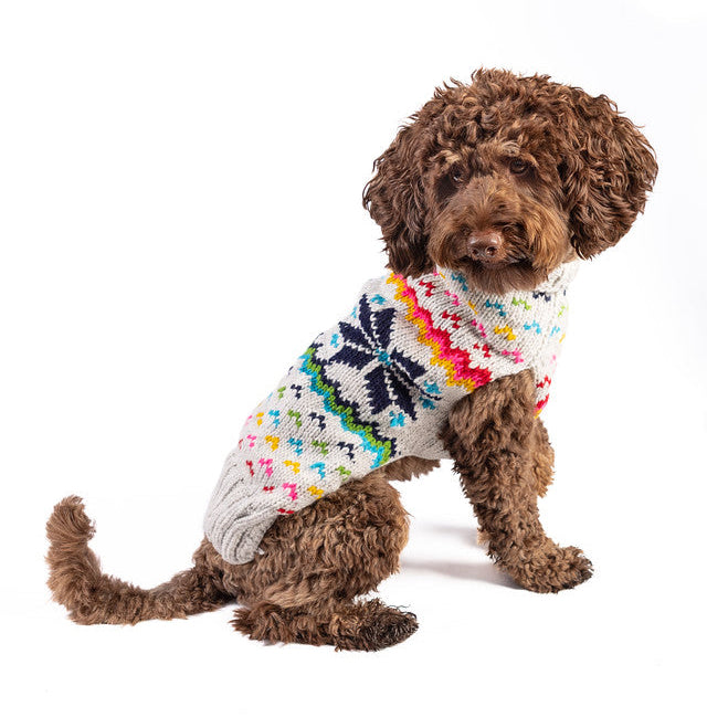 Rainbow Snowflake Hand Knit Wool Dog Sweater by Chilly Dog