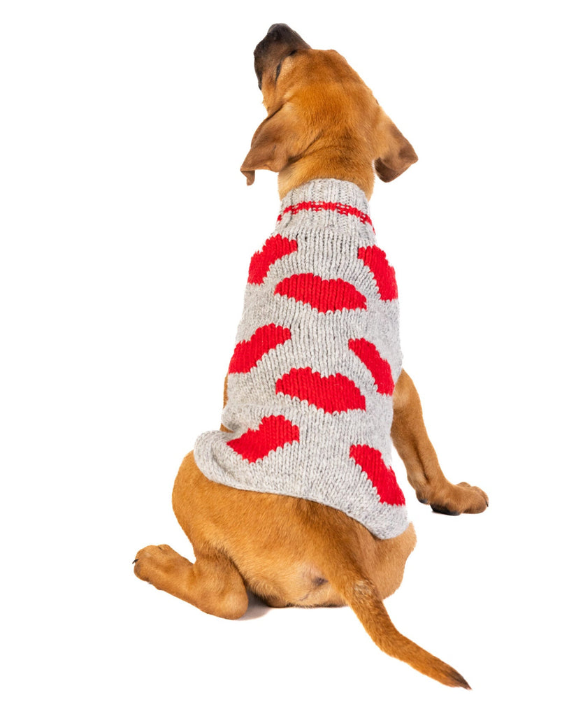 Red Hearts Hand Knit Wool Dog Sweater by Chilly Dog