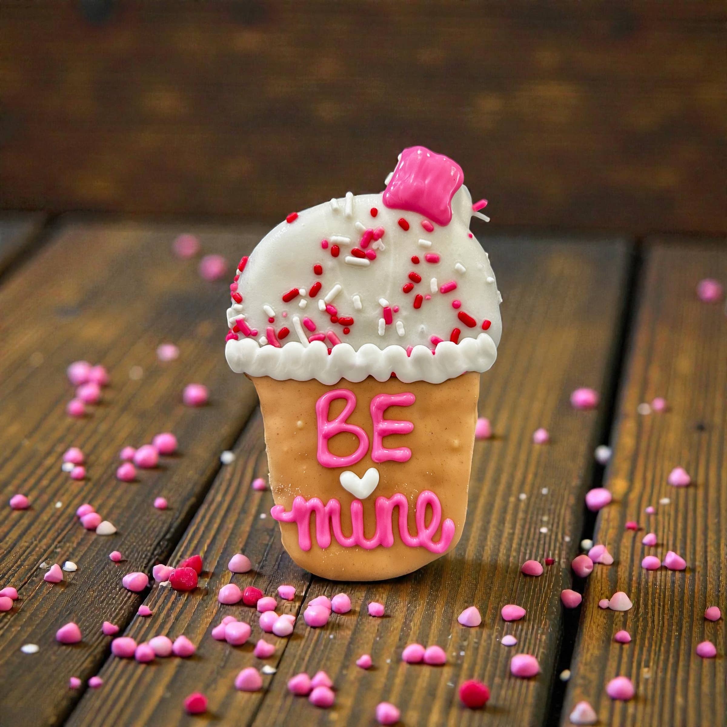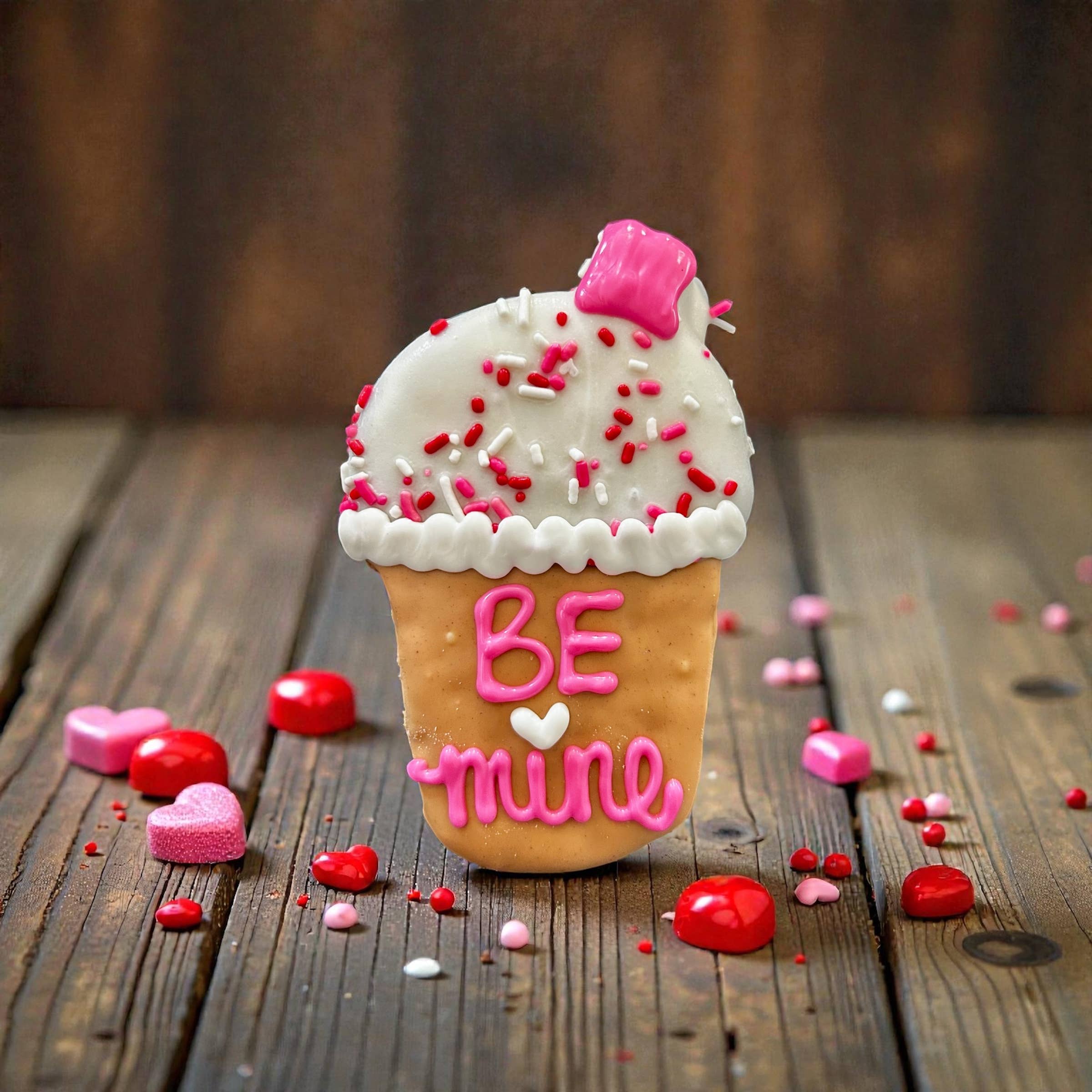 These Be Mine Iced Brews Valentines iced coffee will get tails wagging! These are the PAWfect gift for every puppy this Valentine Day! Handcrafted from only quality all natural ingredients, all yumyum4dogs are baked with love in small batches. Treats are 6x3 inches Store treats at no greater than 72 degrees out of direct light to avoid meltage. 6-12 month shelf life if stored properly (out of direct light, in cool, dry area) Ingredients: Peanut Butter, Whole Wheat Flour, Canola Oil, Cinnamon, Oats, Eggs and Honey. Crude Analysis: Crude Protein (min.)..13.0% Crude Fat (min.).........10.0% Crude Fiber (max.)......2.2% Moisture (max)……….…3.5%