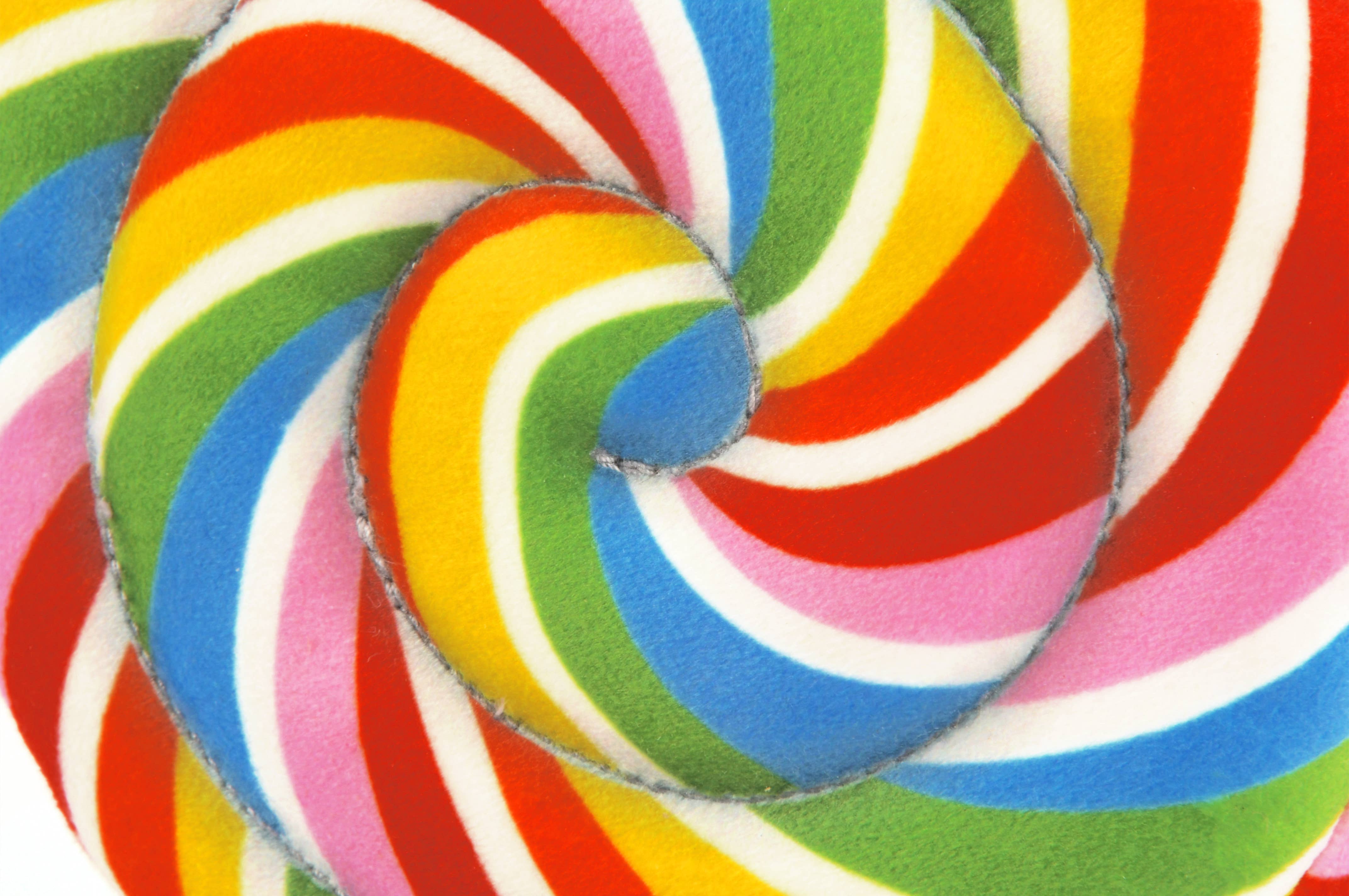 Introducing P.L.A.Y.’s Snack Attack Lollipup toy - this rainbow lollipup boasts two curved squeakers in the body for double the excitement, while a hidden rope serves as the lollipop stick. With its vibrant design and unique features, your dog will be thrilled to play with this toy and satisfy their sweet tooth! •Hand-made craftsmanship, double layer exterior and reinforced stitching for extra durability •Eco-friendly PlanetFill® filler is made from 100% post-consumer certified-safe recycled plastic bottles •Machine washable and dryer friendly •Features AZO-free dyes •