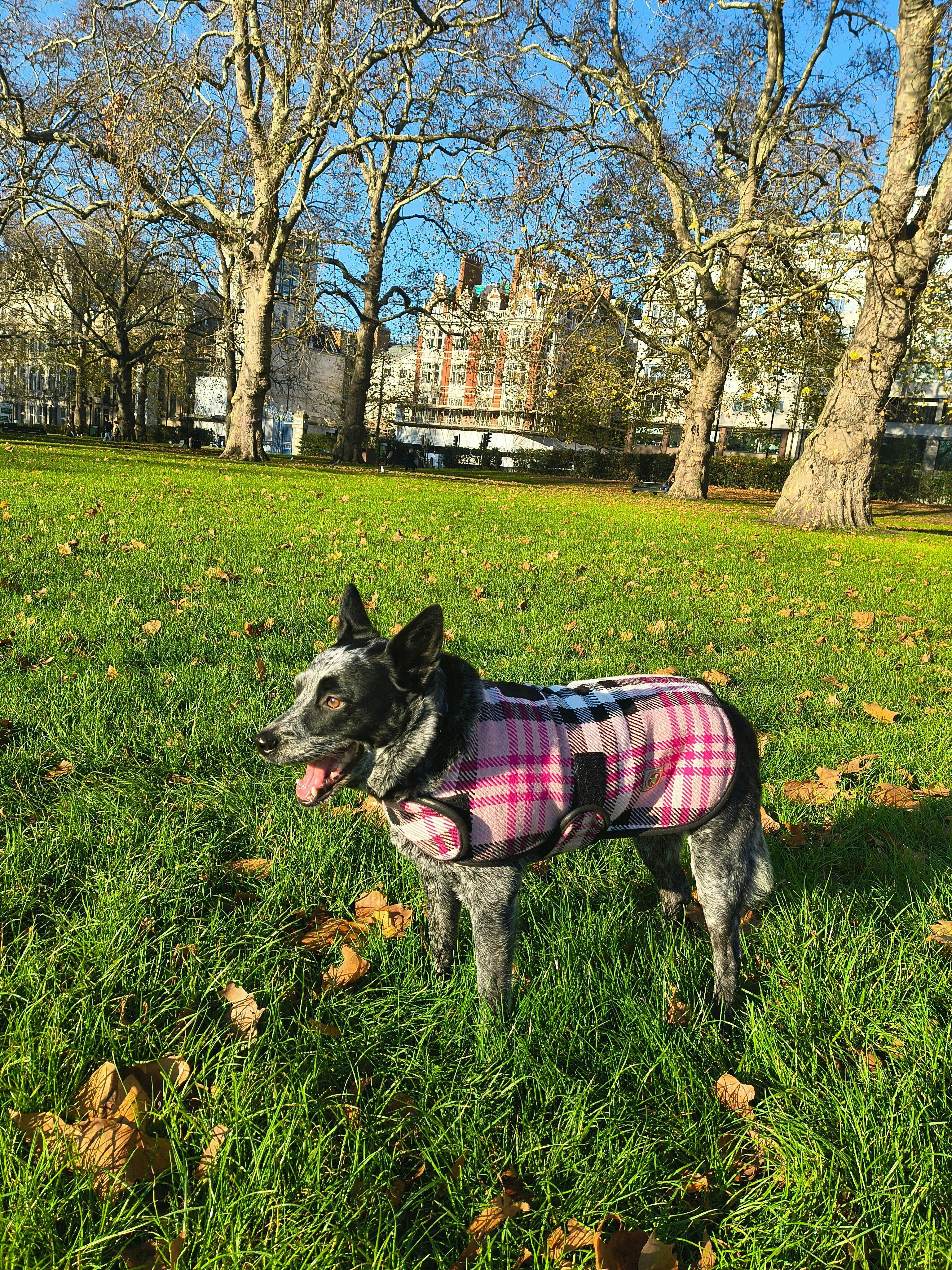 I love this jacket, it's warm and nice quality and easy to put on with the Velcro straps. The medium size fits my Cattle Dog perfectly. Keeps her nice and warm for our walks in London!