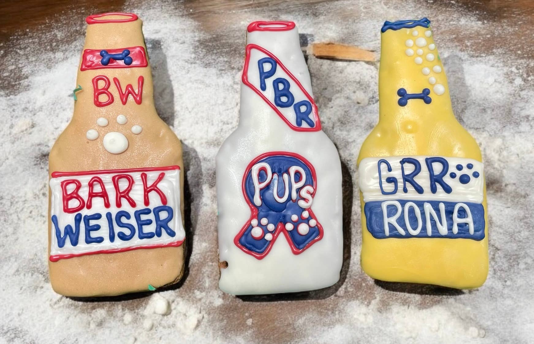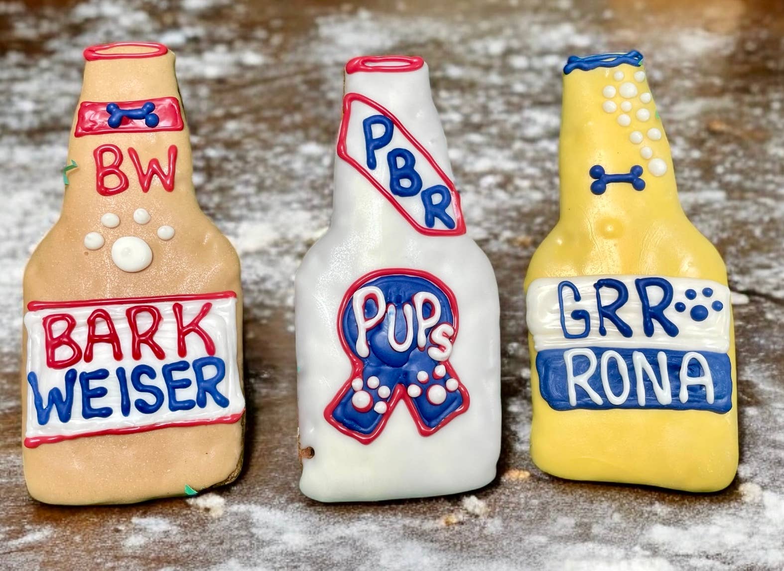 Whose pooch is a lush? Ours is & im sure your may be as well! Pick a variety of alcoPAWlic themed treats. Brew treats are 6 inches tall x 2.5 inches wide. Handcrafted in small batches & baked with love in yumyum4dogs classic peanut butter recipe owner & pup will love these yummy, FUNNY PUNS hand decorated with all natural yogurt chip icing! Have a specific treat in mind? Send us a woof at yumyum4dogs@gmail.com Store treats at no greater than 72 degrees out of direct light to avoid meltage. 6-12 month shelf life if stored properly (out of direct light, in cool, dry area) Ingredients: Peanut Butter, Whole Wheat Flour, Canola Oil, Cinnamon, Rolled oats, Honey, Yogurt & love! Guaranteed Analysis: Crude Protein (min.)................13.0% Crude Fat (min.)......................10.0% Crude Fiber (max.)...................2.2% Moisture (max.).......................3.5%