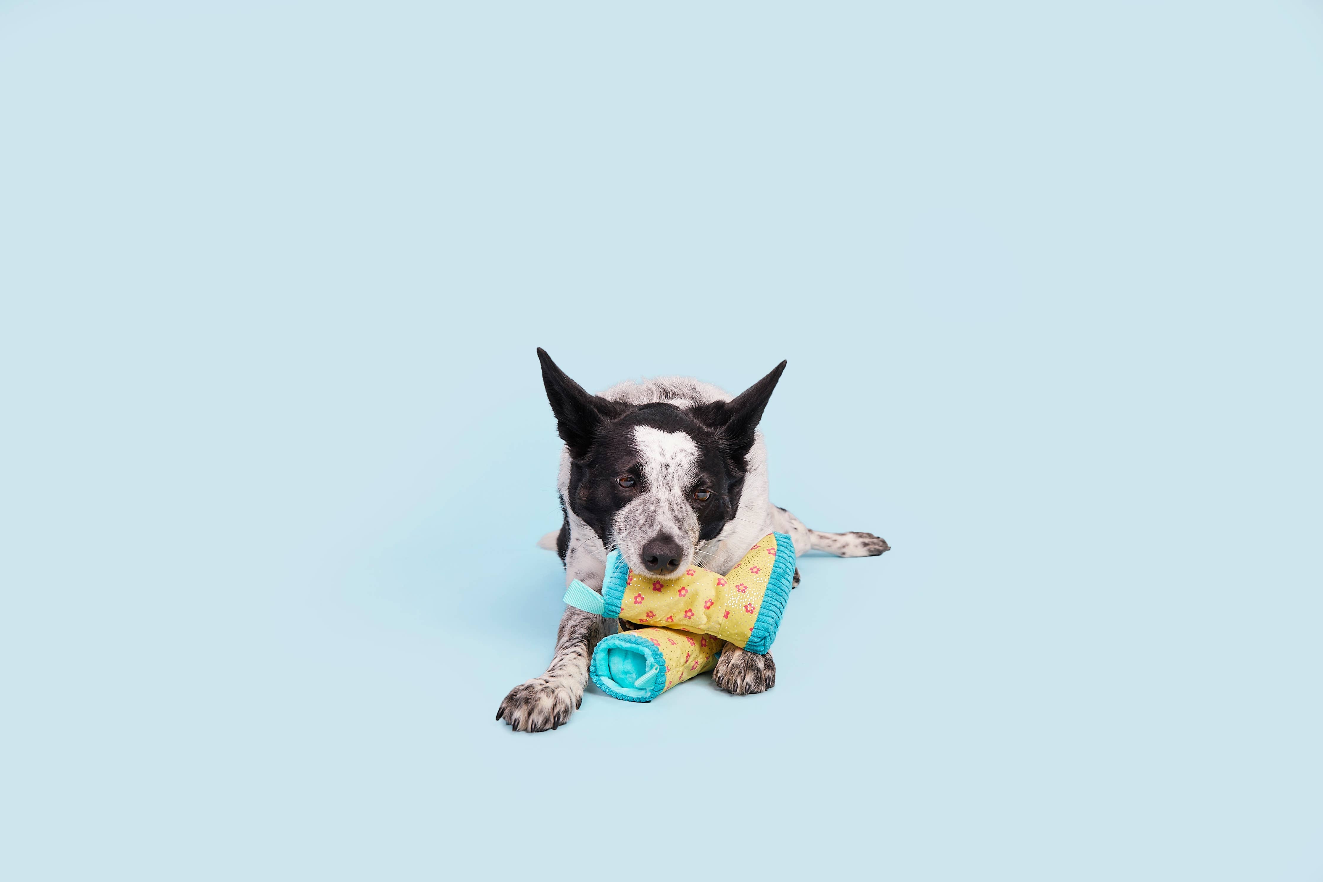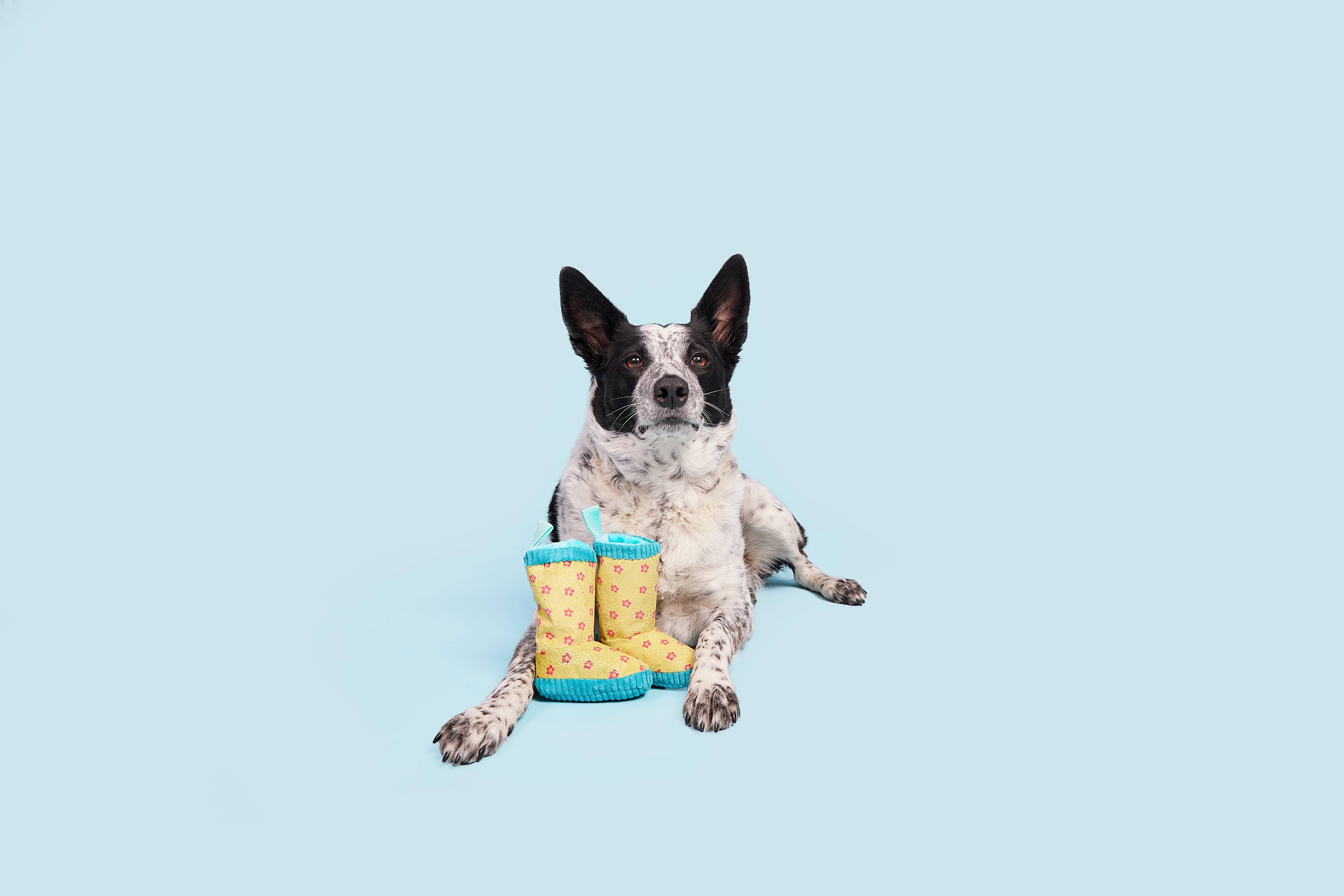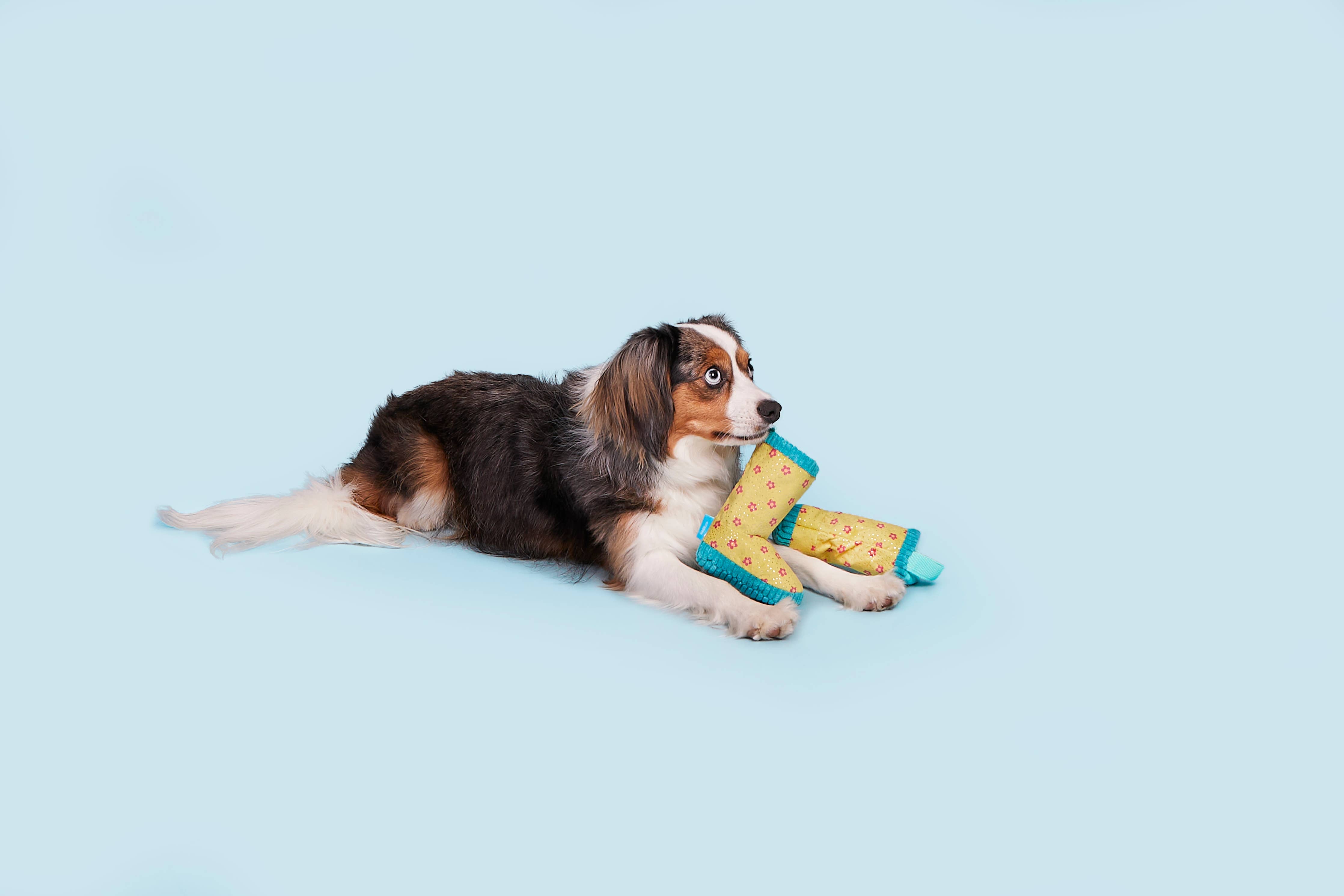 Give boredom the boot with this rain boots dog toy. Smelly Wellies features two squeakers, crazy crinkle, and is packed with fluff so small pups can really step in it! And the Whip-N-flip Nylon straps are perfect for a spring fling! They may not be waterproof, but these Smelly Wellies are definitely drool-worthy.