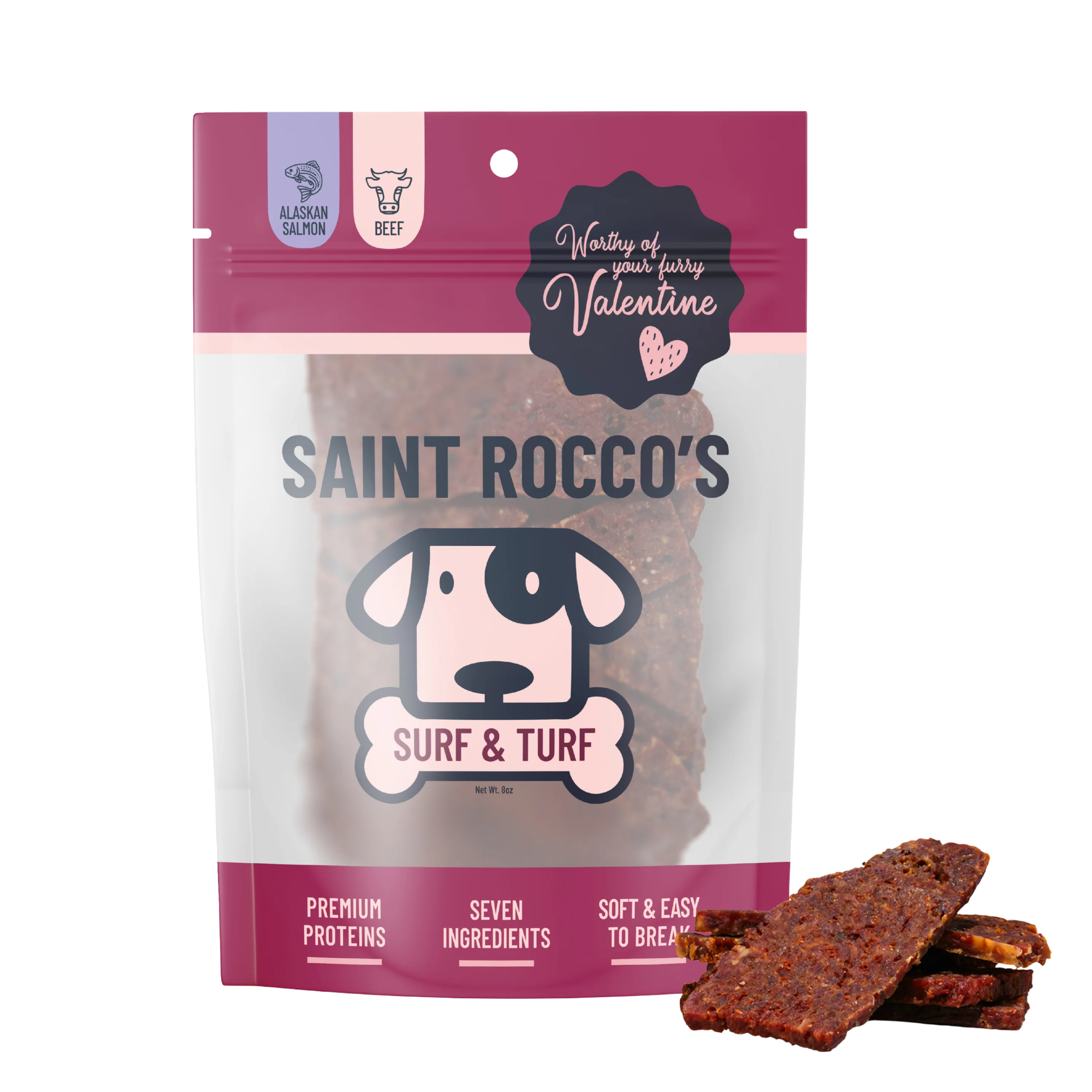 Crafted with locally sourced ground beef and Wild-Caught Alaskan Salmon this treat is rich, savory, and made to celebrate the bond you share with your furry valentine!
