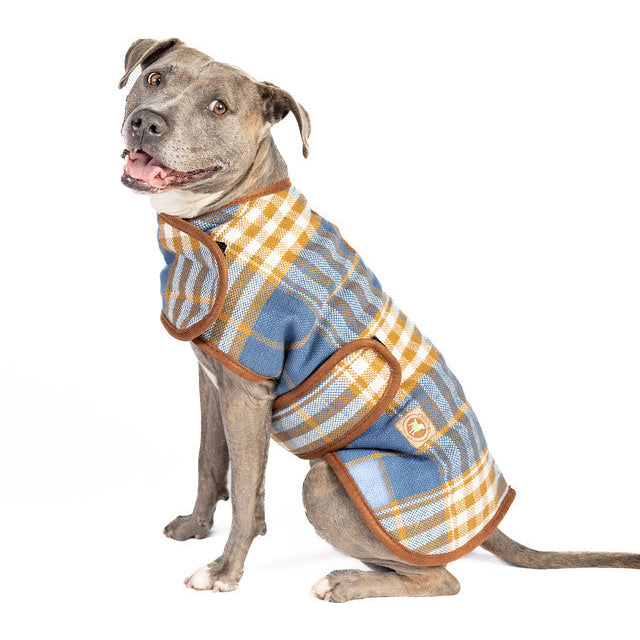 A classic plaid dog blanket coat is perfect for chilly winter days. This coat has easy on/off Velcro straps on the chest and girth to adjust to a perfect fit, lined with warm fleece.